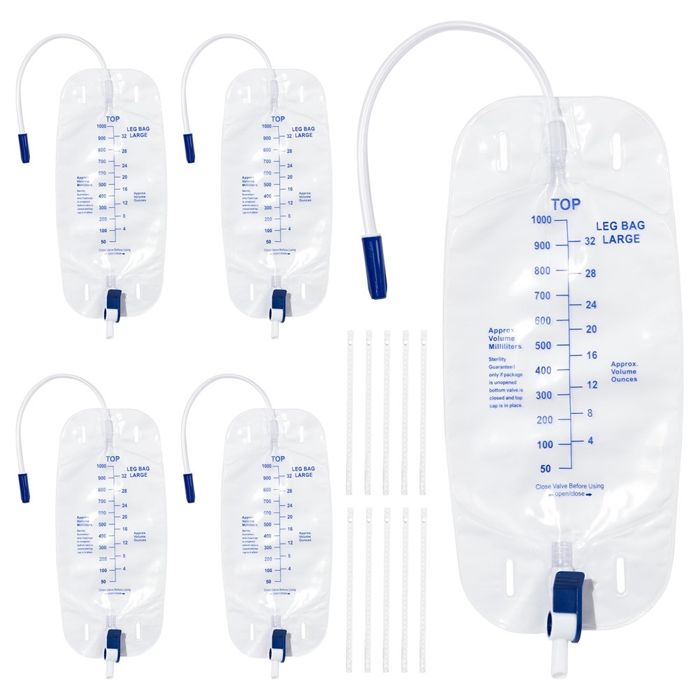 Catheter Leg Bag 1000ml Urinary Drainage Bag, 5 Pack -Reflux for Men C6E96716