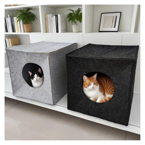 SAPIIKEF Soft Felt Cats Bed Cube House Cave Sleeping Bag Cat Bed House Warm Nest For Cat Portable Carrier Bag Outdoors Foldable Cat House(Gray)