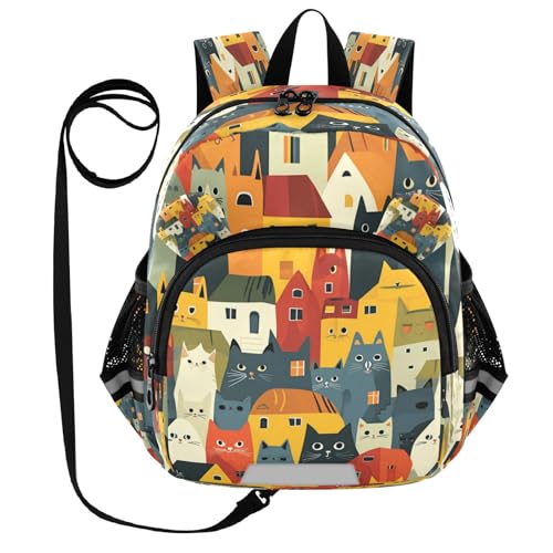 ISAOA Mini Backpack Child Backpacks Toddler Backpack Travel Daypack Bag House Cats for Kindergarten Elementary Boys Girls