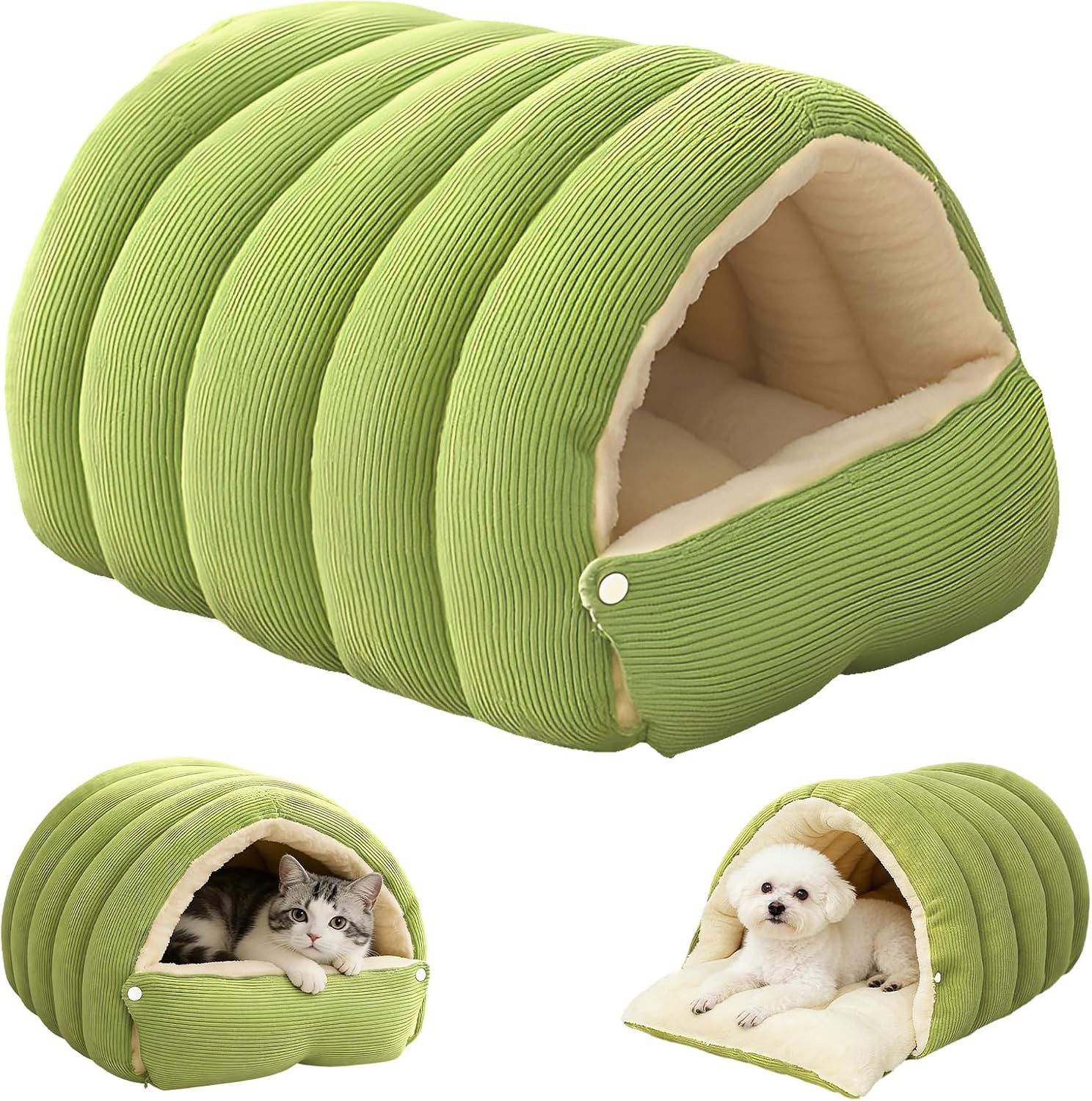 Cat Bed for Indoor Cats - Cat Cave Bed Cat House Cats Tent with Removable Washable Cushioned Pillow, Soft Kitten beds (Beige-1, Medium(15''x15''x15'')
