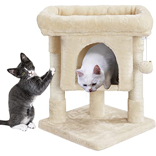 Yaheetech Cat Tree Tower for Kitten Cats, Pet Standing House with Sisal-Covered Top Platform Spacious Condo Detachable Dangling Ball, Pet Activity Center, Beige