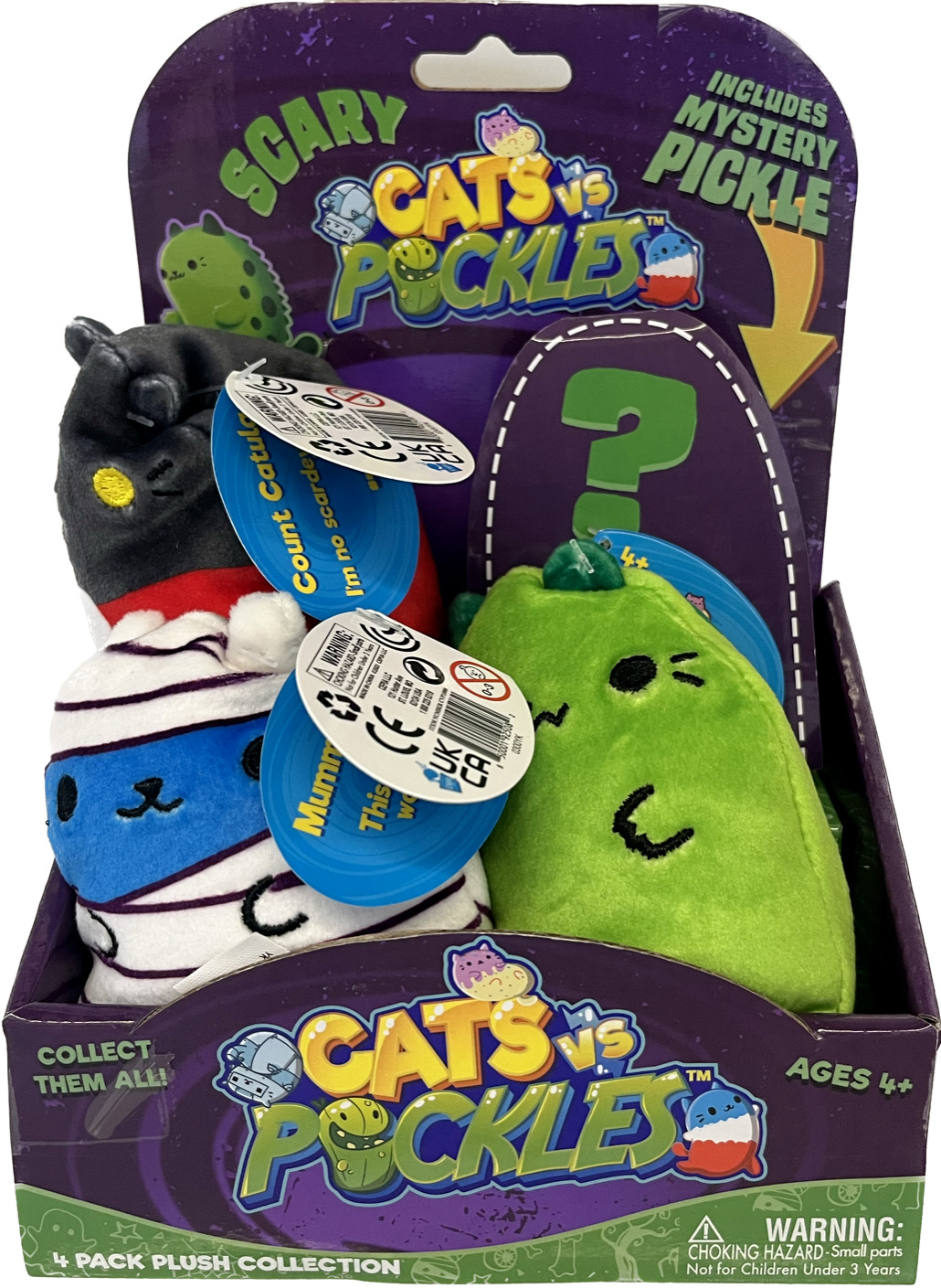 Scary Cats vs Pickles 4 Pack Plush Collection with Mystery Pickle