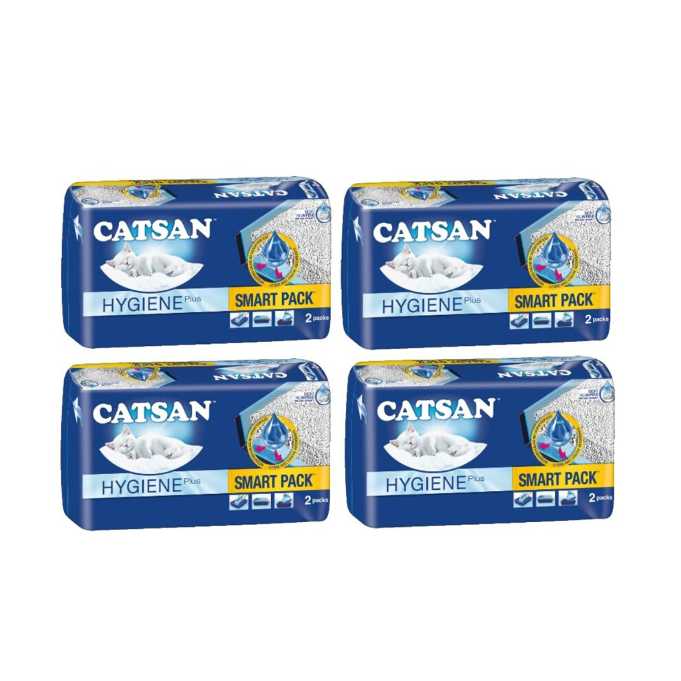 CATSAN - Hygiene Plus Non-Clumping Adult Cat Litter and Kitten Litter - With Liner - 2 x 4L Bag - Smart Pack x 2 Inlays