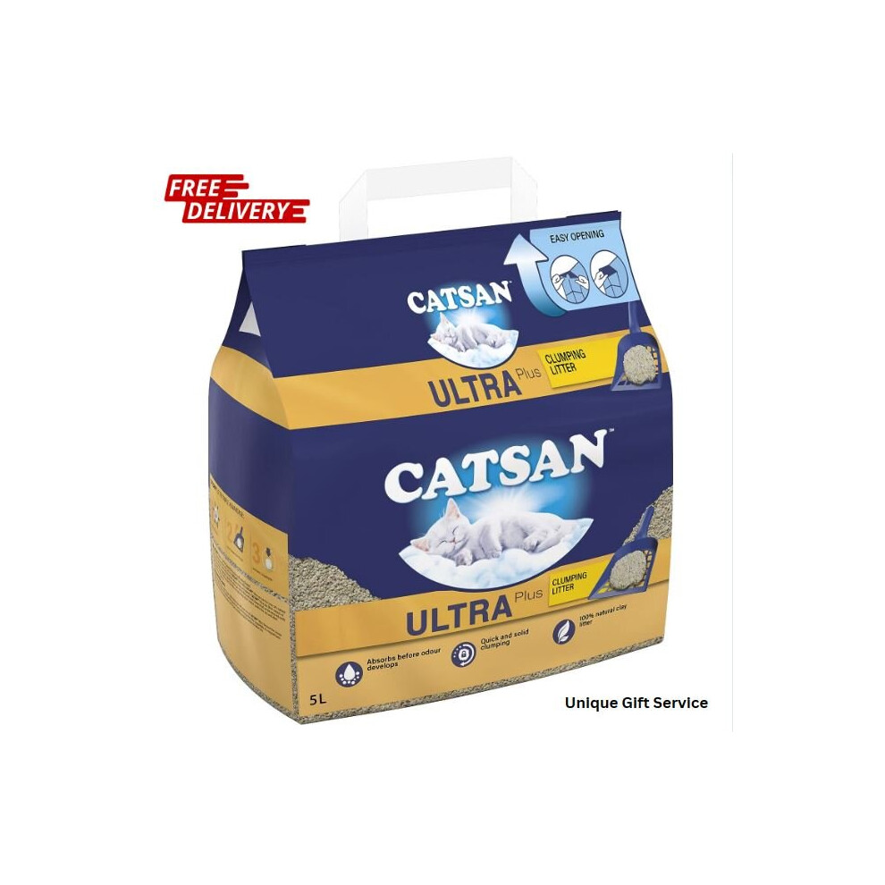 (CATSAN Clumping Cat Litter 5L) Catsan Ultra Plus Clumping Cat Litter, 5L