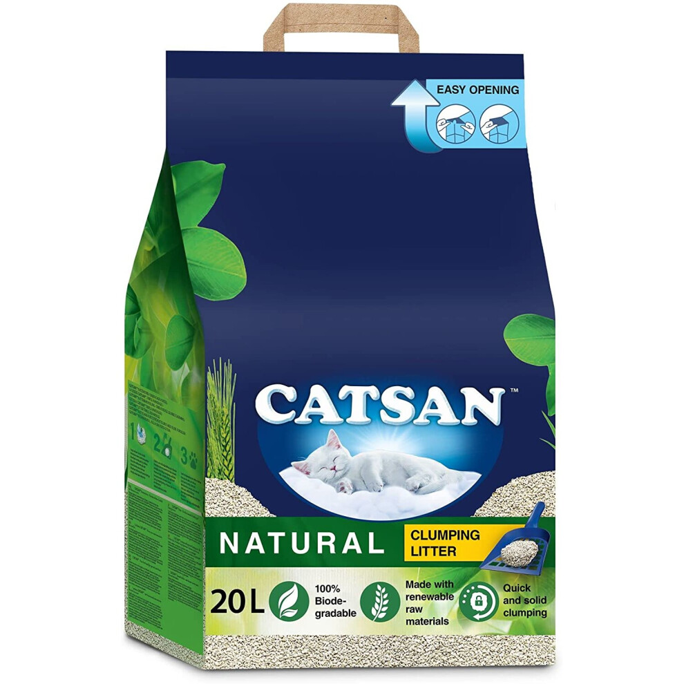 Catsan Natural Clumping Cat Litter 20 Litre Bag, 100 Percent biodegradable, extra absorbent