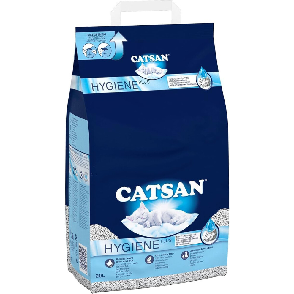 CATSAN Hygiene Plus Non Clumping Adult Cat Litter and Kitten Litter 20L 100% Natural and Absorbent