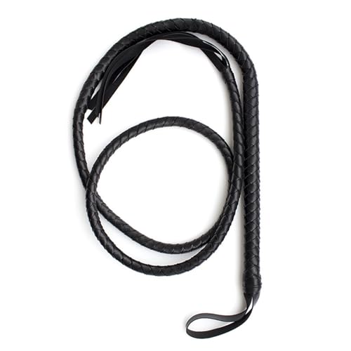 KRENIE Black Whip Costume Accessory – Indiana Jones Style Leather Bullwhip Prop, Catwoman Lion Tamer Cowboy Whip for Adults Women Men, Halloween Cosplay Party Supplies