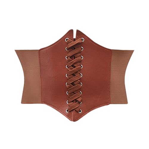 ARWIG Corset Belt, Elasticated Belt for Women Pirate Costume Adult Women Pirate Corset Catwoman Accessories Leather Corset Belt Waist Corset for Cosplay Pirate Catwoman (Coffee, 73 cm)