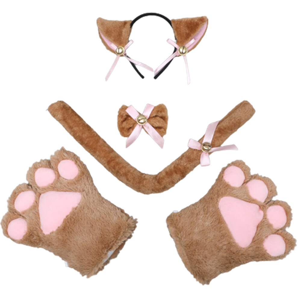 Alaiyaky Cat Woman Accessories Suit, 6Pcs Cat Costume Catwoman Outfit with Headband Mask Choker Tail Claw-Gloves Whip, Halloween Cat Costumes Adult Women for Dress Up Theme Party (Style A, F)