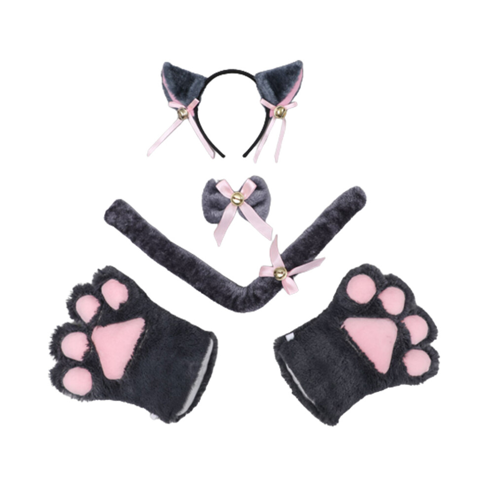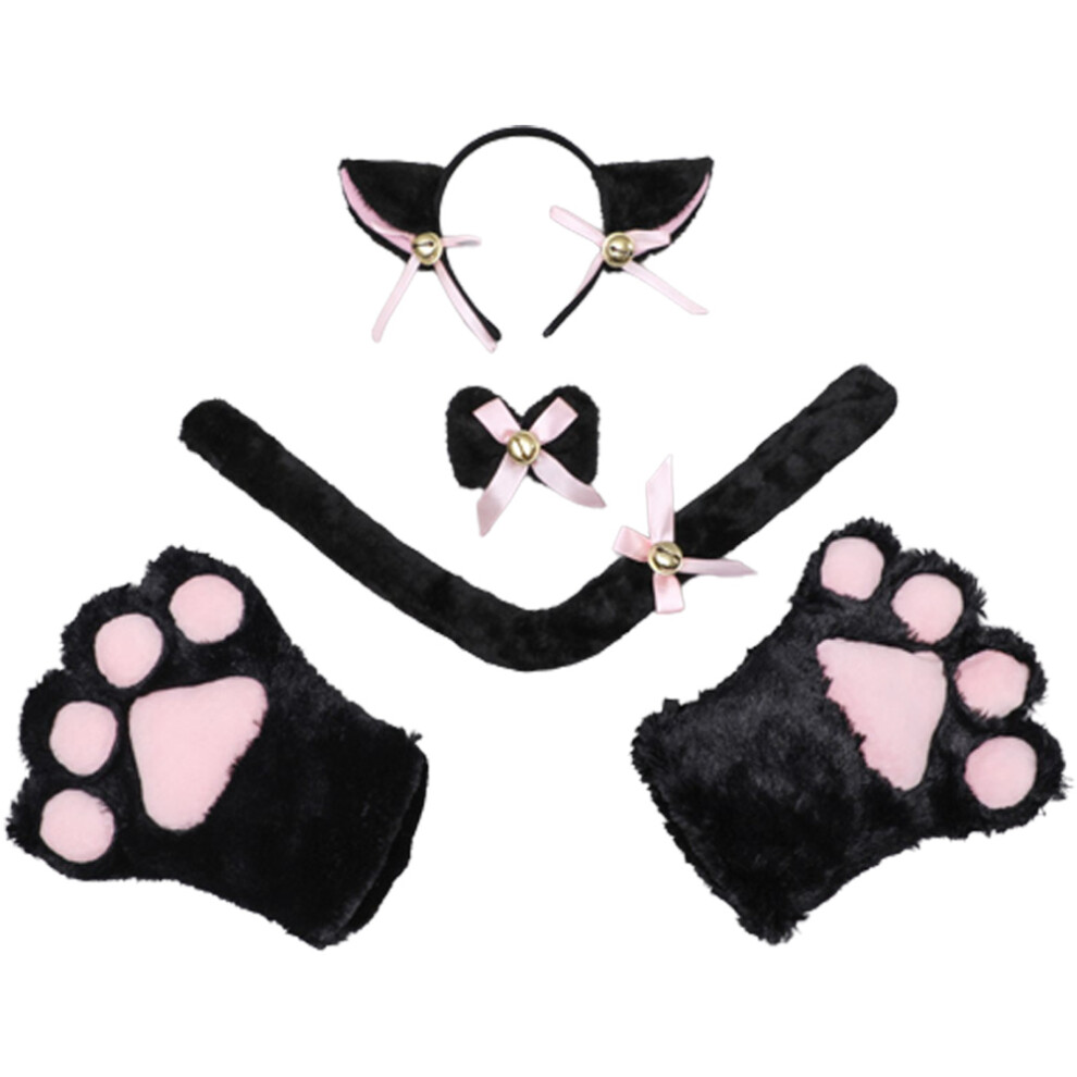 Celebration Directre 5PCS Halloween Black Cat Costume for Women, Cat Ear Headband Tail Cat Eye Cover Gothic Choker Lace Gloves Catwoman Costume Accessories for Women Halloween Cosplay