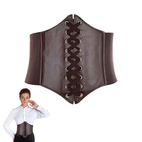 Corset Belt,Women Halloween Pirate Tie Belts Costume,Waist Leather Dress,Elastic Wide Lace-up Underbust Womens,Ladies Adult Body Cinch for Cosplay Catwoman Retro Theme Party,Steampunk (Coffee)