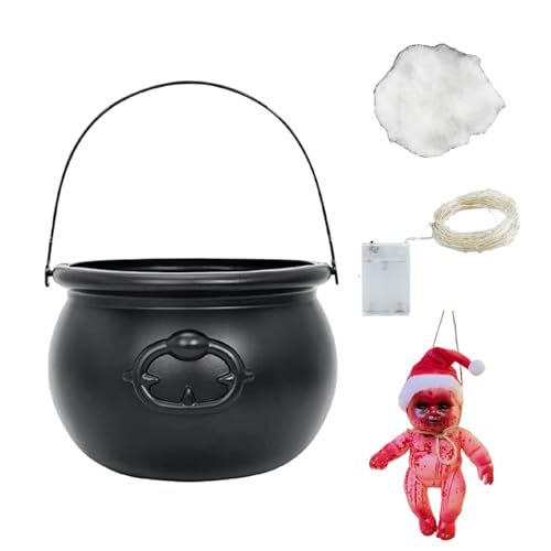 Witch Black Cauldron, Witch Cauldron Fog Manufacturer,Witch Cauldron Pot Decor LED Lights - Heavy Duty Building Creepy Accessories for Entryway Table,