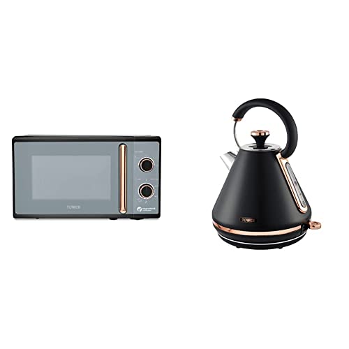 TOWER T24038RG Cavaletto Manual Microwave, 800W, 20L, Black Rose Gold & T10044RG Cavaletto Pyramid Kettle with Fast Boil, Detachable Filter, 1.7 Litre, 3000 W, Black and Rose Gold