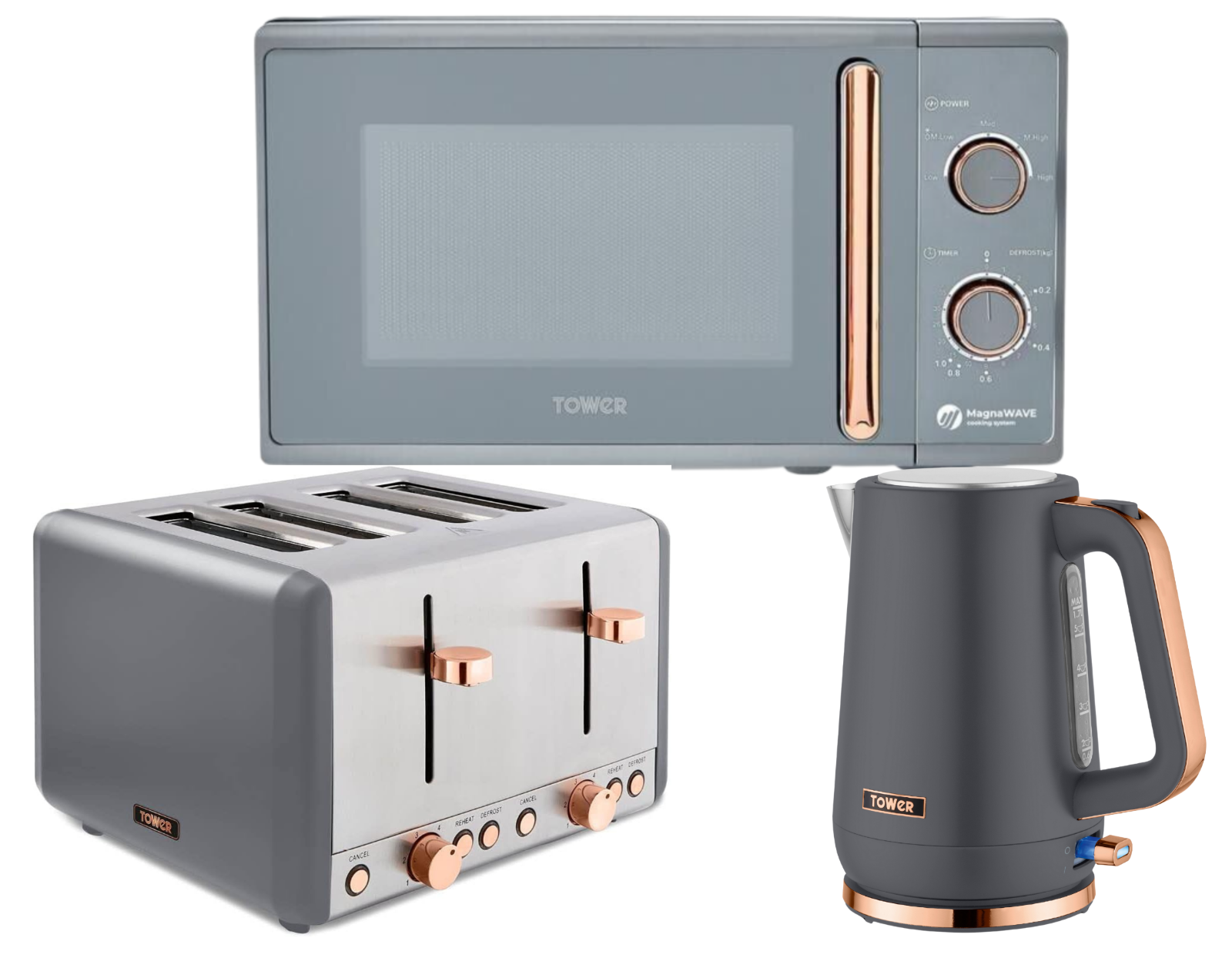 Tower Cavaletto Grey Jug Kettle 4 Slice Toaster Microwave Matching Kitchen Set