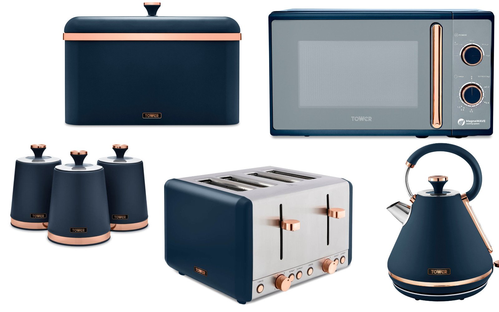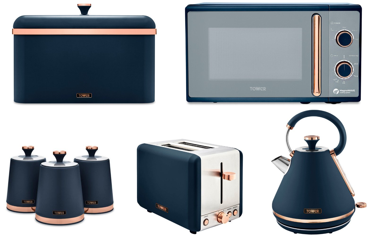 Tower Cavaletto Kettle Toaster Microwave & Canisters Midnight Blue & Rose Gold