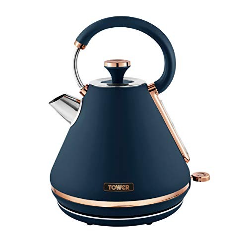 Tower T10044MNB Cavaletto Pyramid Kettle with Fast Boil, Detachable Filter, 1.7 Litre, 3000 W, Midnight Blue and Rose Gold