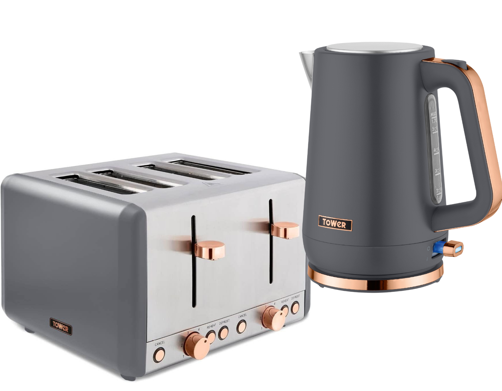 Tower Cavaletto AOBUNDLE021 Kettle And Toaster Set - Grey / Rose Gold