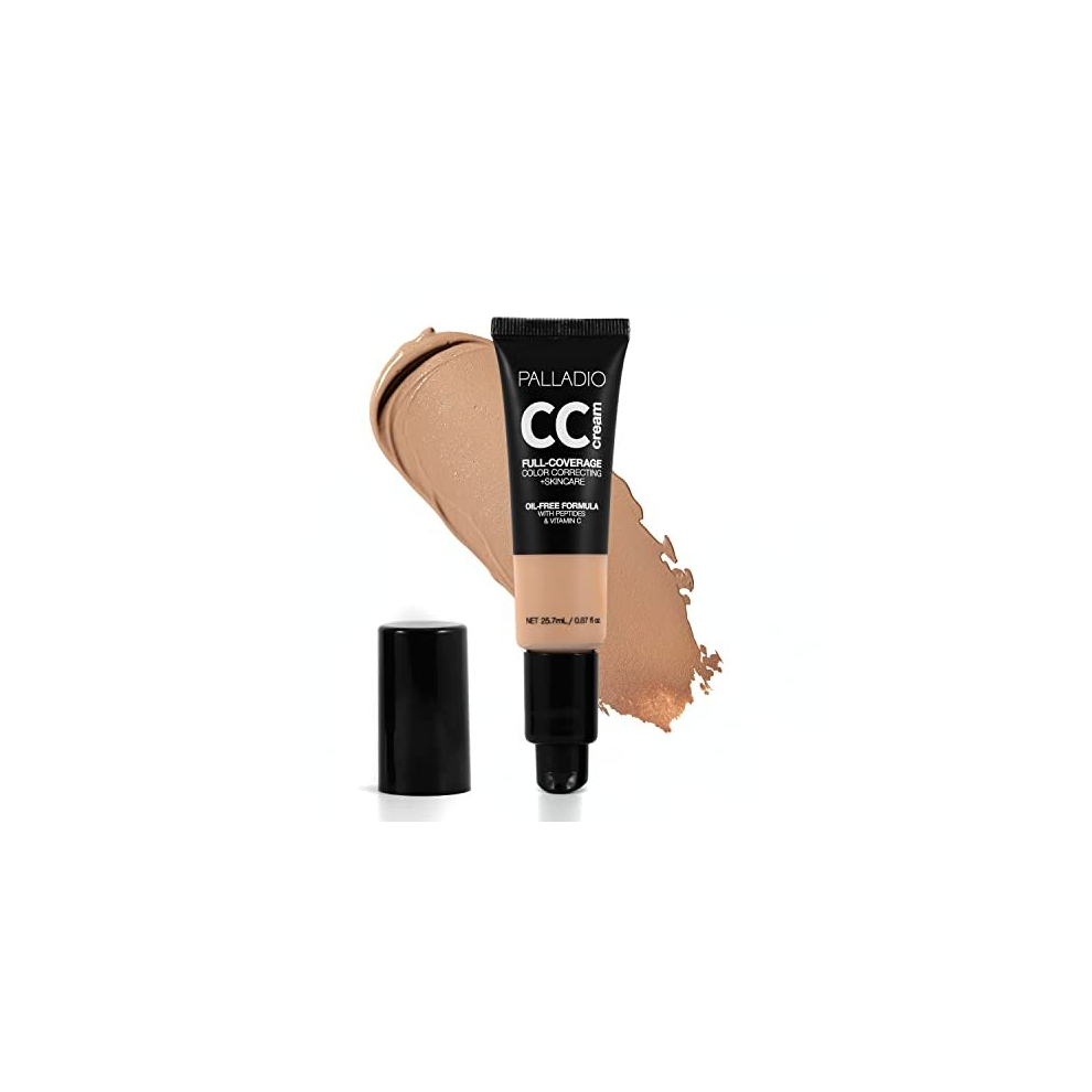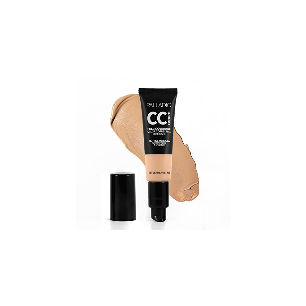 Palladio Full-Coverage Color Correction CC Cream Oil-Free with Peptides & Vitamin C Best for Correcting Redness and Uneven Skin Tone Buildable