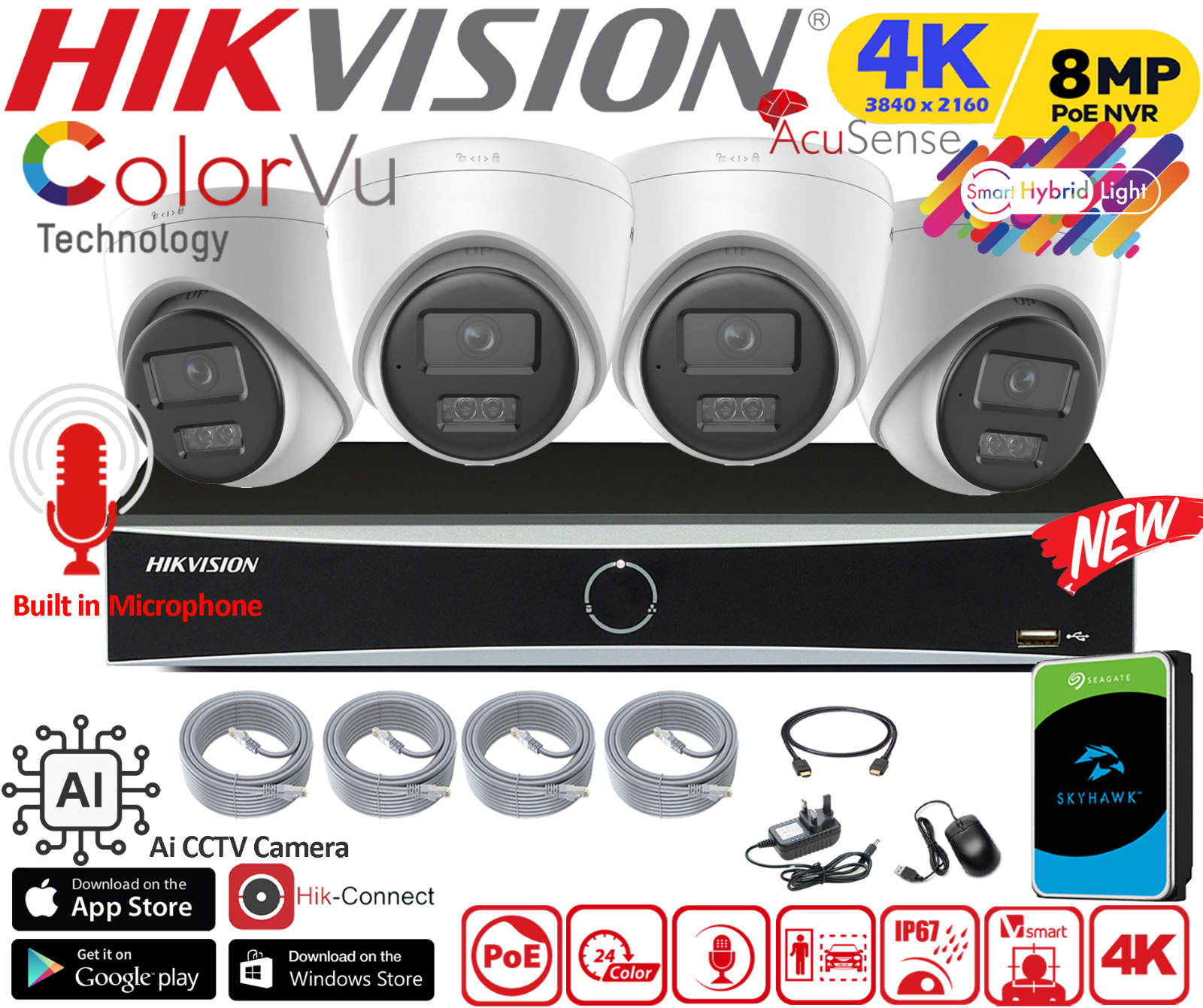 HIKVISION 8MP 4K CCTV CAMERA SECURITY SYSTEM KIT 4CH NVR OUTDOOR WITH HARD DRIVE