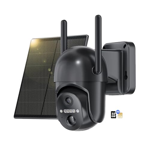 Xega 4G LTE Cellular Security Camera Solar With SIM Card, Outdoor Wireless No WiFi Security Cam CCTV, 2K HD PTZ Night Vision Motion Detection Notification Alarm TF&Cloud Storage(Not Support WiFi)