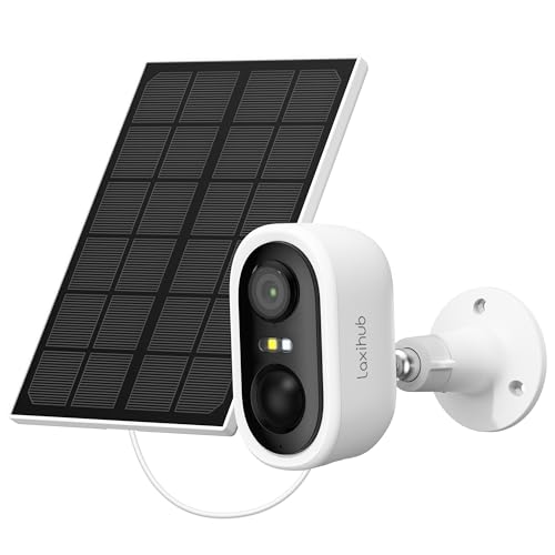 LAXIHUB 2K/3MP Outdoor Camera Wireless,Security Camera with Solar Panel,Two-Way Audio,Night Vision,Sound Floodlight Arlarm,Motion Detection,Wifi CCTV for Home&House Security,Works with Alexa