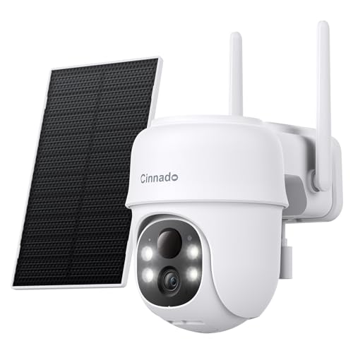 Cinnado Solar Security Camera Outdoor Wireless 2K CCTV Camera Systems House Security, Solar Battery Powered, PIR Detection, 360° Color Night Vision, Siren