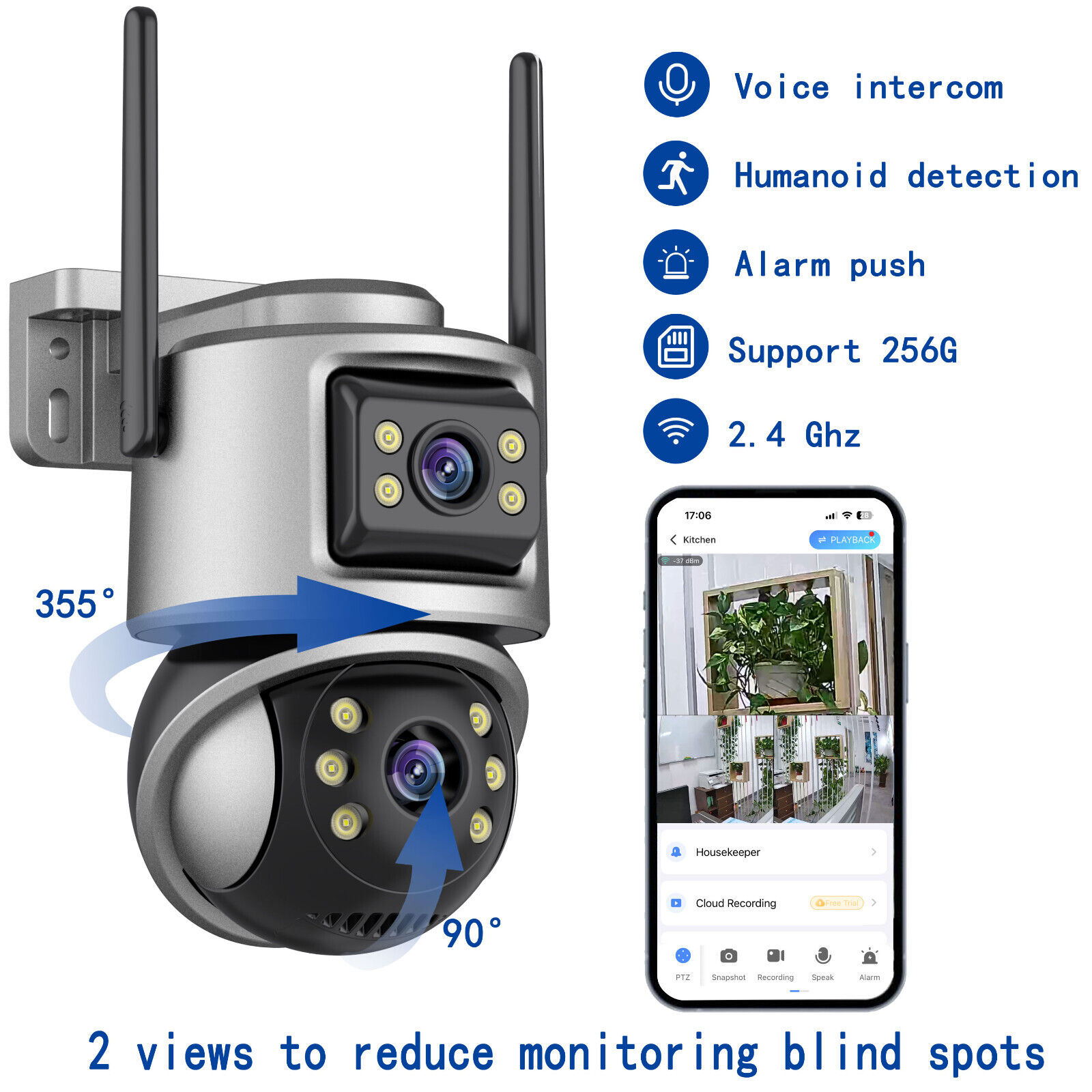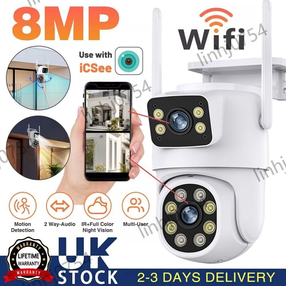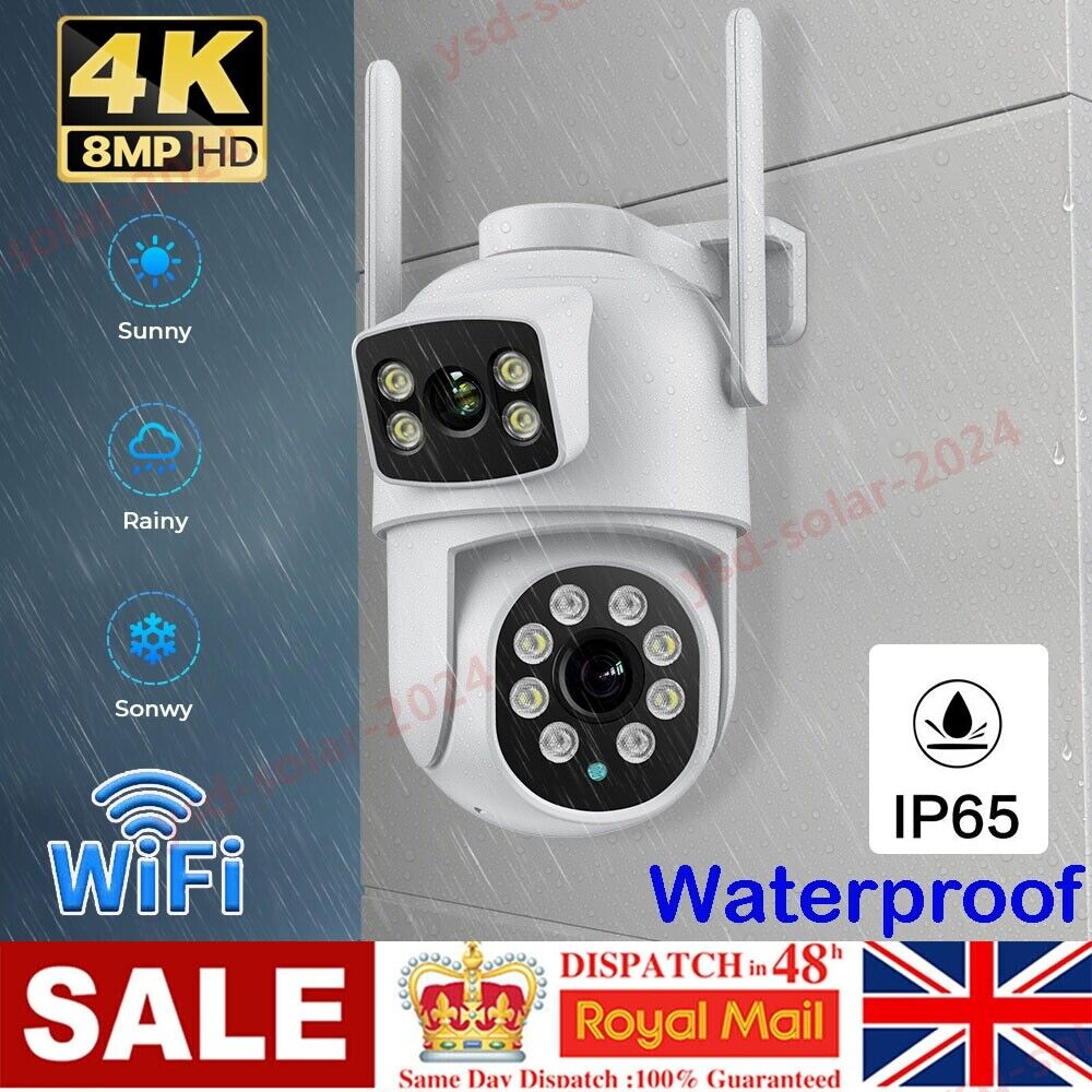 8MP 4K WiFi IP Camera Outdoor Dual Lens CCTV Wireless Home Security PTZ IR Cam