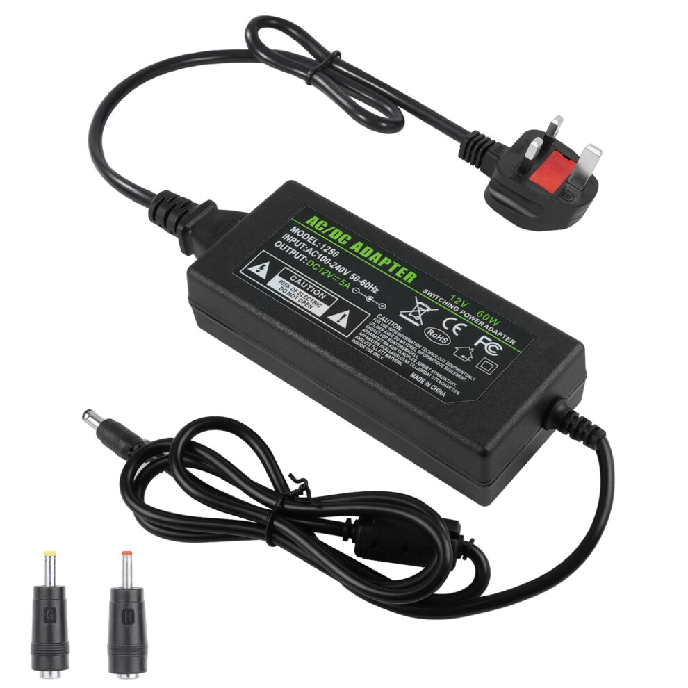 12V 5A 60W Power Supply for LED Strip Lights, Router, CCTV Camera, ADSL Cats, Switch, Security camera, Audio/Video, Printers, Monitors, UK plug, Wall