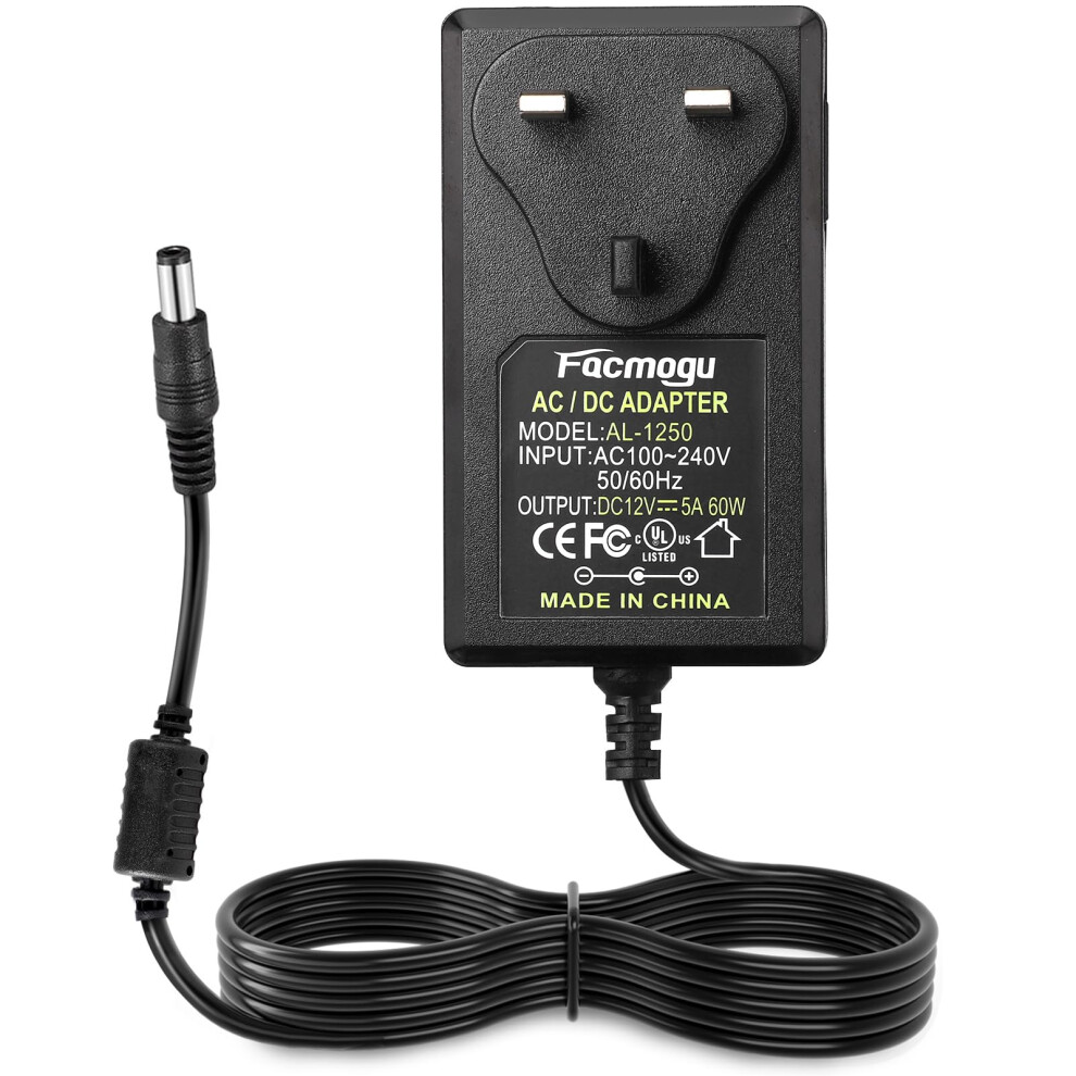 Facmogu 12V 5A 60W Power Supply Adapter, AC 100-240V to DC 12V Power Wall Adapter UK Plug, 60W 3-Pin UK Plug for LED Light Strip/Monitors/TV/CCTV/Amp