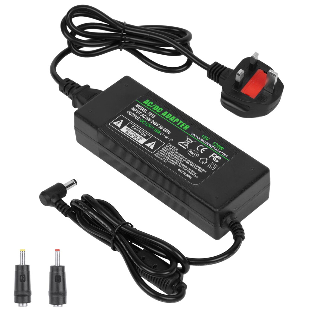 Power Supply 12V 10A, AC100-240V to DC 12V 10A Power Supply Adapter Converter Transformer, 12 Volt 10 Amp 120W 5.5mm x 2.5mm /2.1mm DC Output Jack for LED Strips,LCD Monitors,CCTV Camera