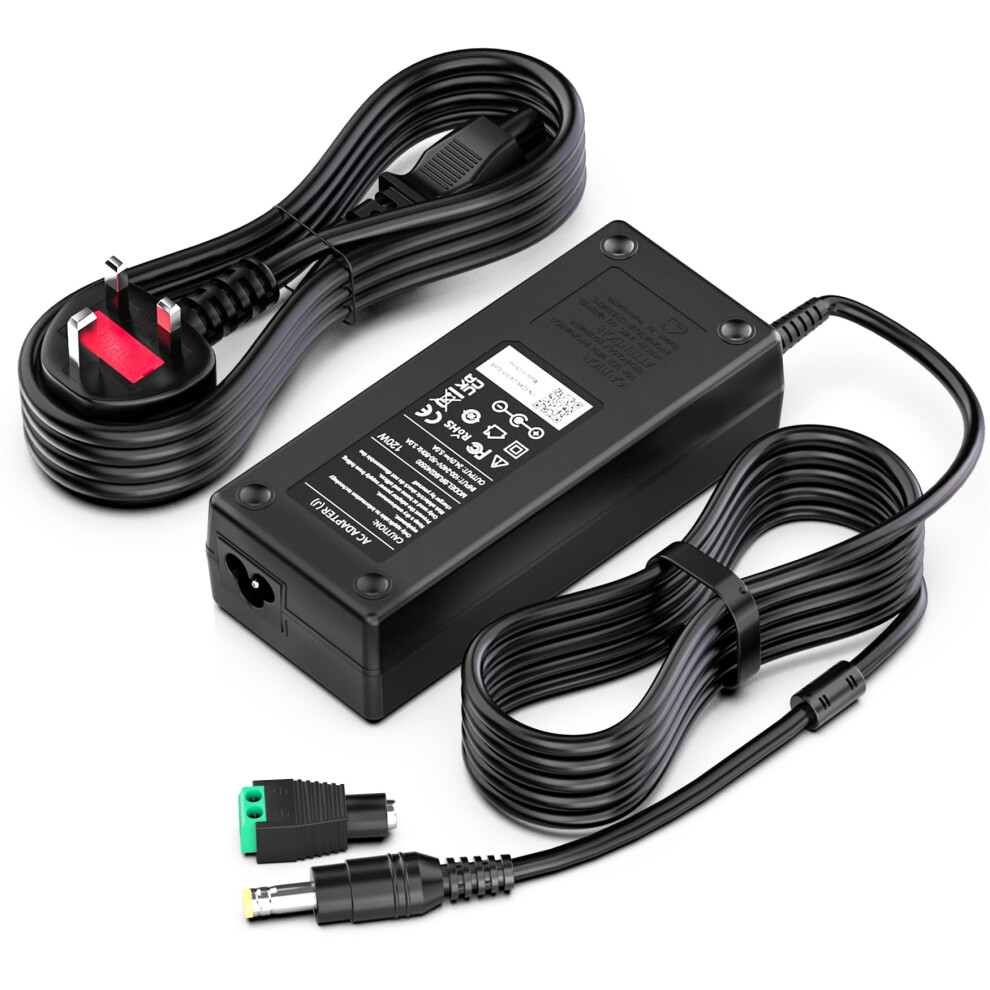 Power Supply 24V 5A UK Plug Compatible with Led Strips, LCD Monitors, CCTV Camera, AC 100-240V to DC 24V 120W Converter Adapter Driver Transformer wi