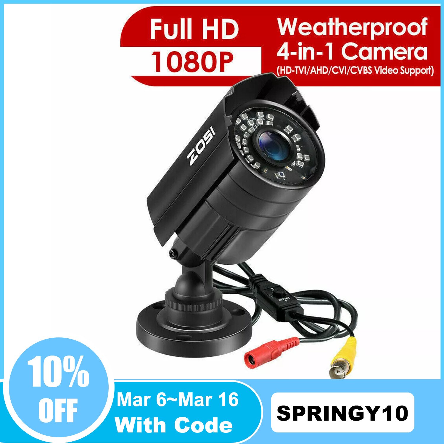 ZOSI Outdoor CCTV Camera 1080P Home Security Night Vision 4in1 TVI AHD CVI CVBS