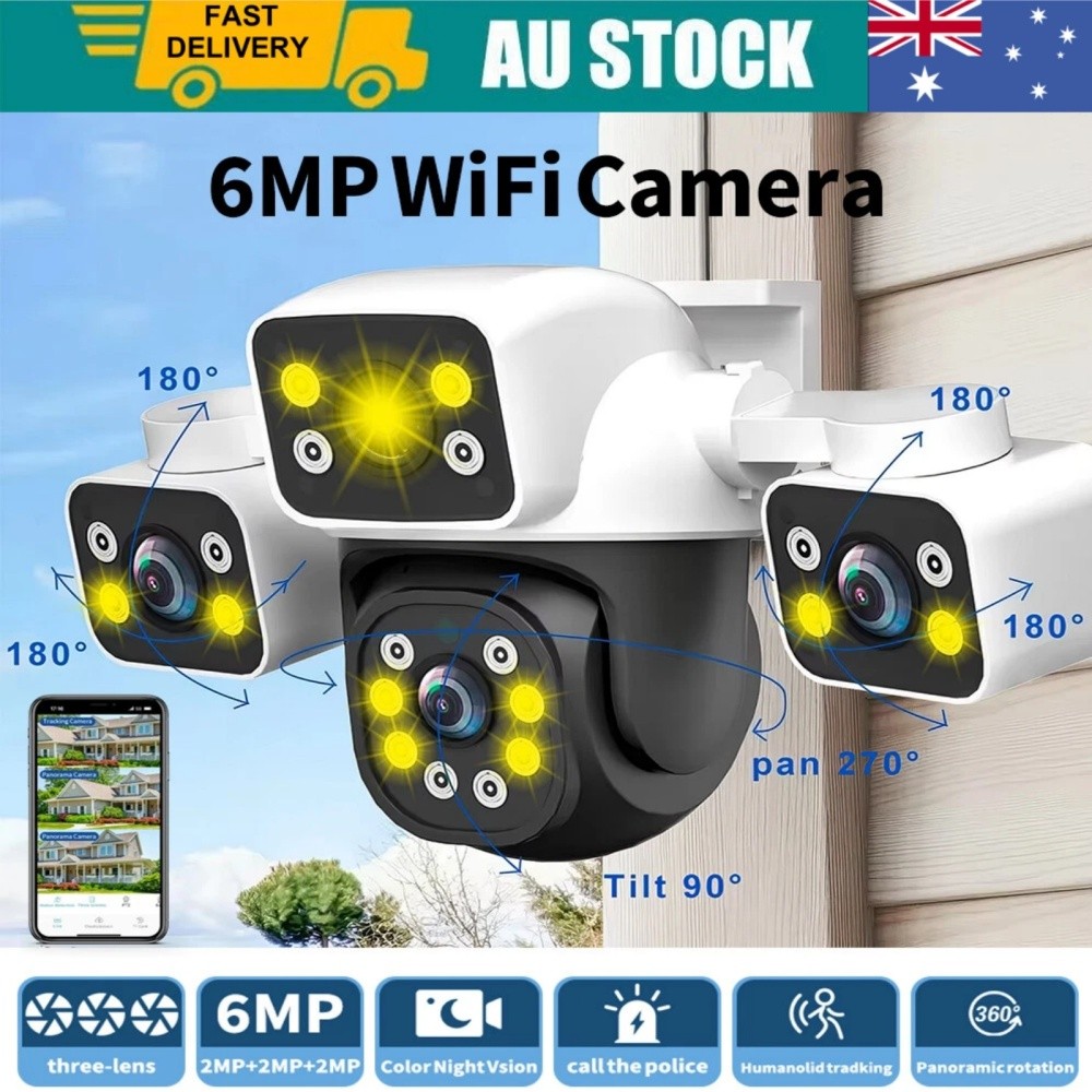 Three Lens 6MP PTZ WiFi IP Camera Outdoor CCTV Security Camera AI Auto Tracking