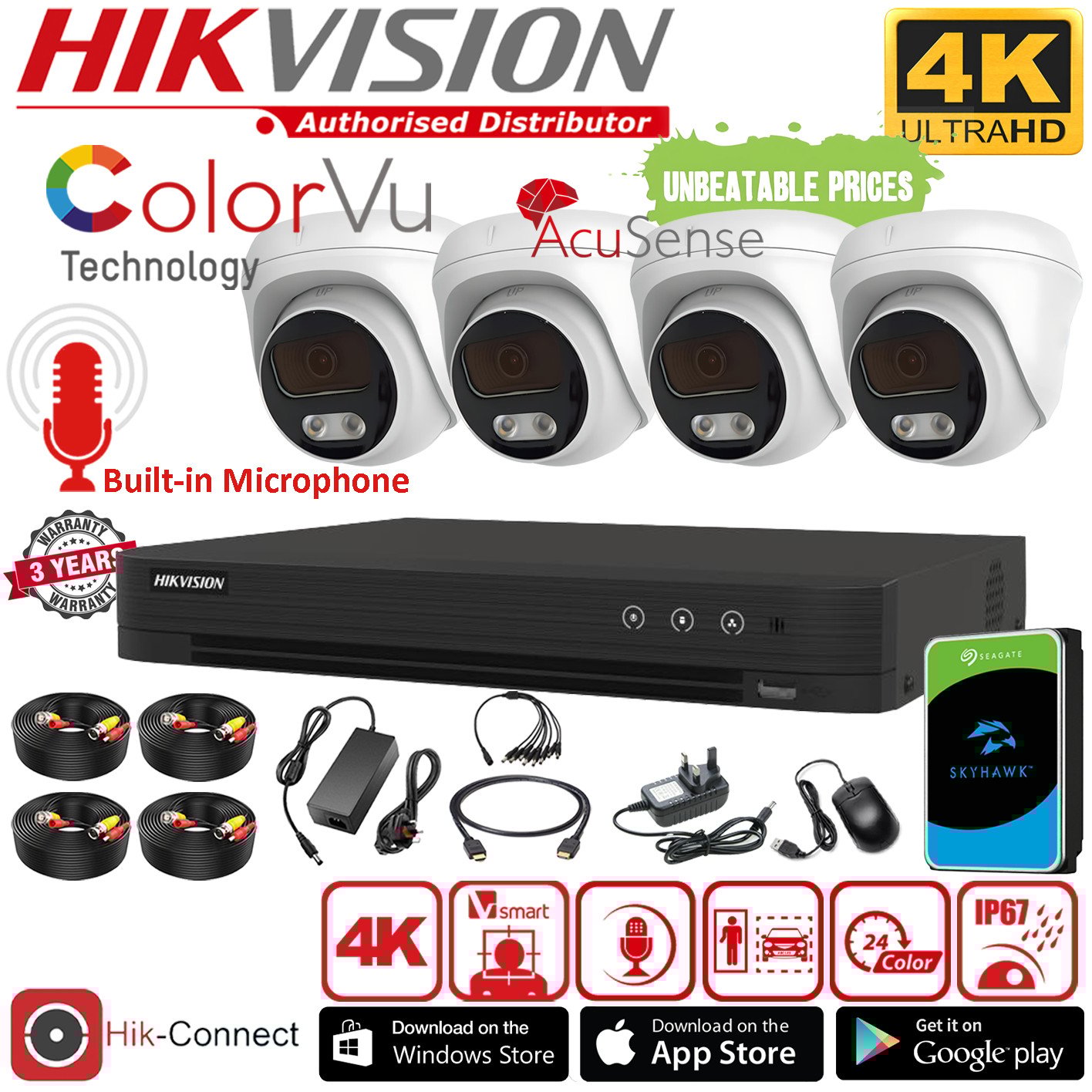 8MP CCTV SYSTEM KIT HOME OUTDOOR SECURITY CAMERA 4K HD DVR WITH HARD DRIVE UK