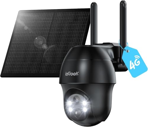 ieGeek 3G/4G LTE Cellular Solar Security Camera Outdoor Wireless with SIM Card, 360° PTZ, 2K Solar No WiFi Wireless CCTV Camera Systems, Color Night Vision, Motion Detection, Siren Light, Two-way Talk