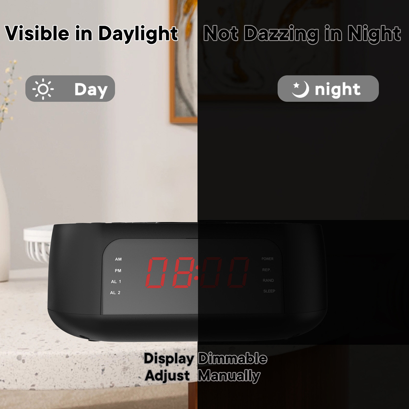 CD Player Alarm Clock USB Charging Dimmable Display Desktop Radio CD P