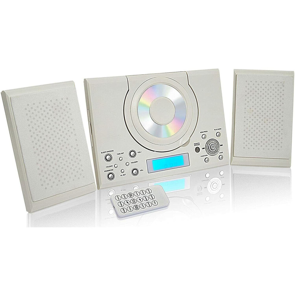 CD Player with Speakers - HiFi System for Home with Radio, USB, MP3, Clock Alarm & Remote - Compact Stereo System with Wall Mount Design - Small CD Players for Home - GTMC-101