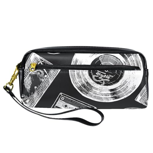 Pencil Case, Vinyl Record Tape CD Cassette Pen Bag Pouch PU Leather Stationery Pouch with Zipper for Boys Girls School & Office Supplies