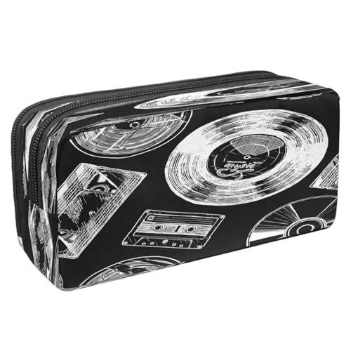 VAPOKF Pencil Case Pen Bag Student Stationery Pouch with Zipper for Boys Girls School & Office Supplies, Vinyl Record Tape CD Cassette