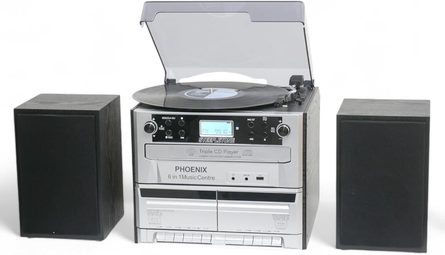 Steepletone Phoenix 6-In-1 Music Centre Bluetooth MP3 FM Radio CD Cassette