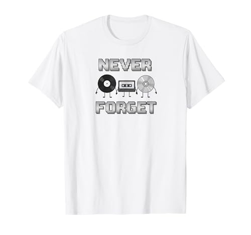 Never Forget Vinyl Record, Cassette, Cd and Mp3 Audio Player T-Shirt