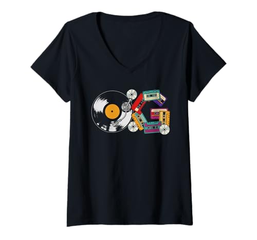 Women's 90s Hip Hop Retro OG Music Vinyl Cassette CD Old School Men V-Neck T-Shirt