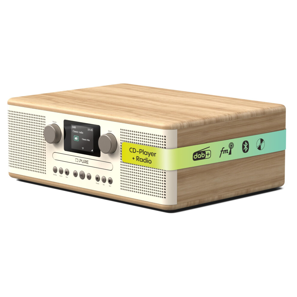 Pure Classic C-D6 Music System (CD Player, DAB+/FM, Bluetooth, AUX, USB, Alarm Sleep Timer) Cotton White/Oak