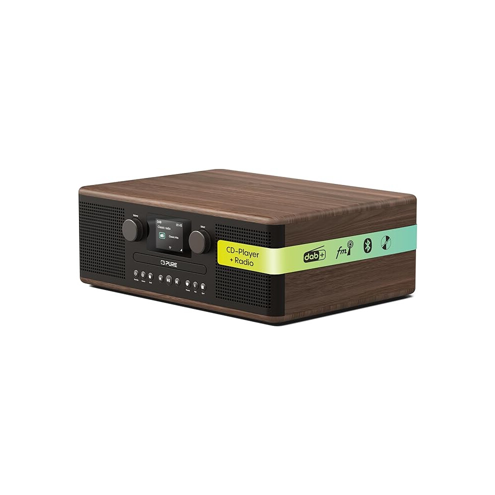 Pure Classic C-D6 Music System (CD Player, DAB+/FM, Bluetooth, AUX, USB, Alarm Sleep Timer) Coffee Black/Walnut