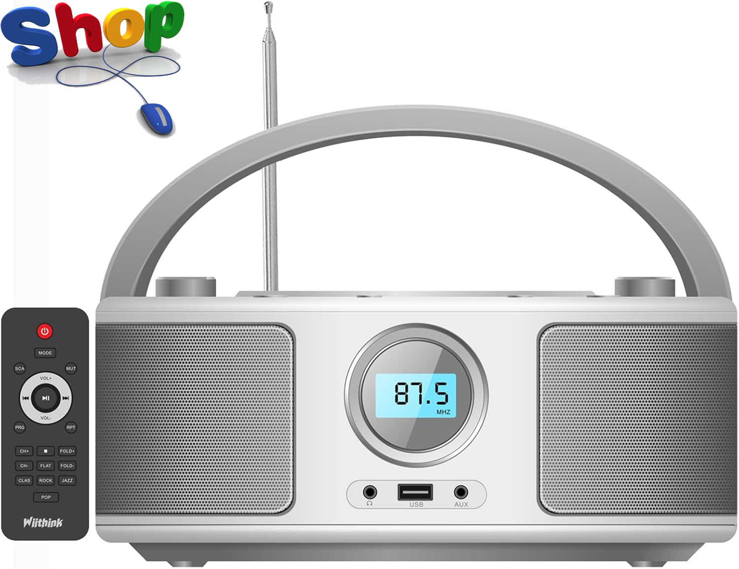 WIITHINK Portable CD Player Boombox with FM Radio