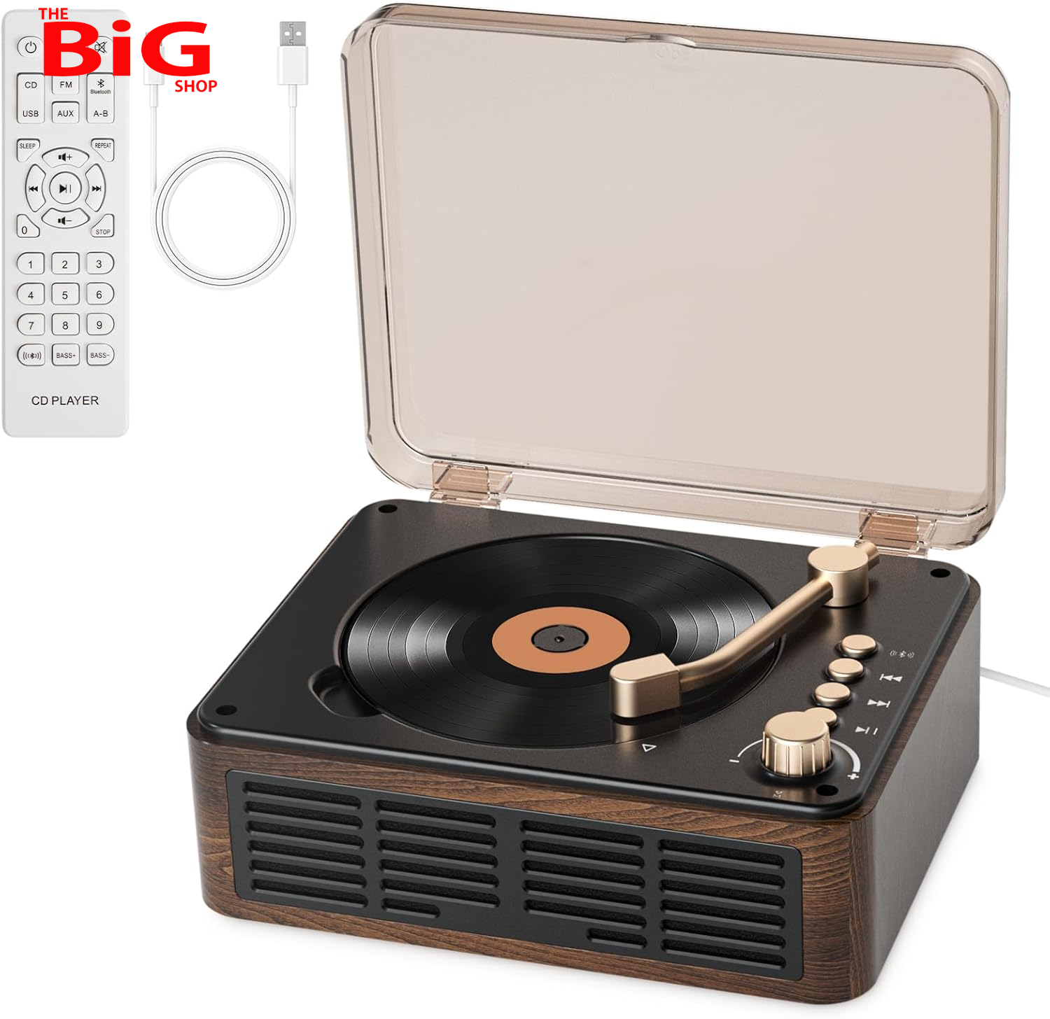 7 in 1 Retro CD Player with Hifi Speakers, Portable CD Player with Remote Contro