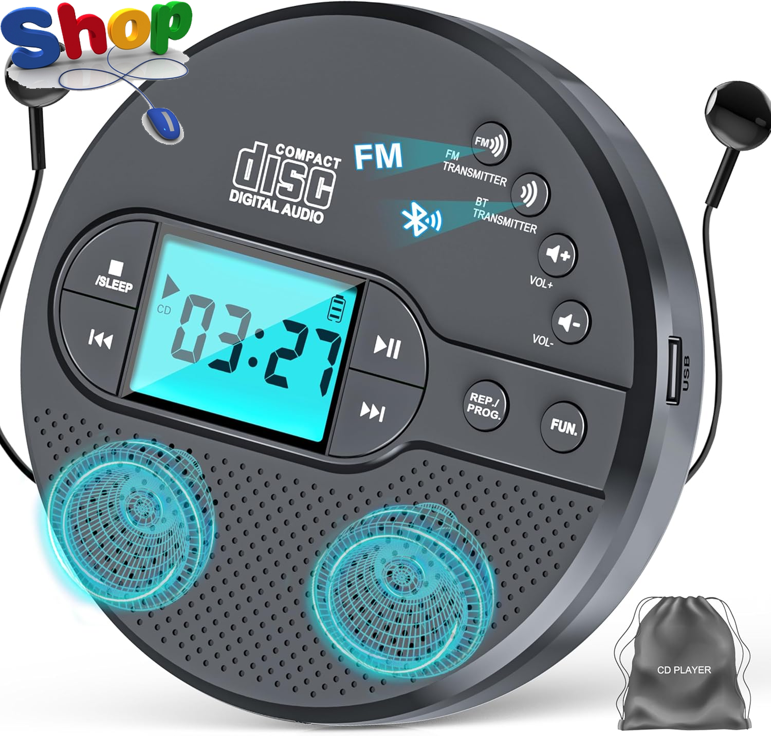Greadio NEW 2025 Discman CD Player with Bluetooth, Portable CD Player with 2000mAh Rechargeable Battery, Compatible FM Transmitter, USB, AUX, Persona