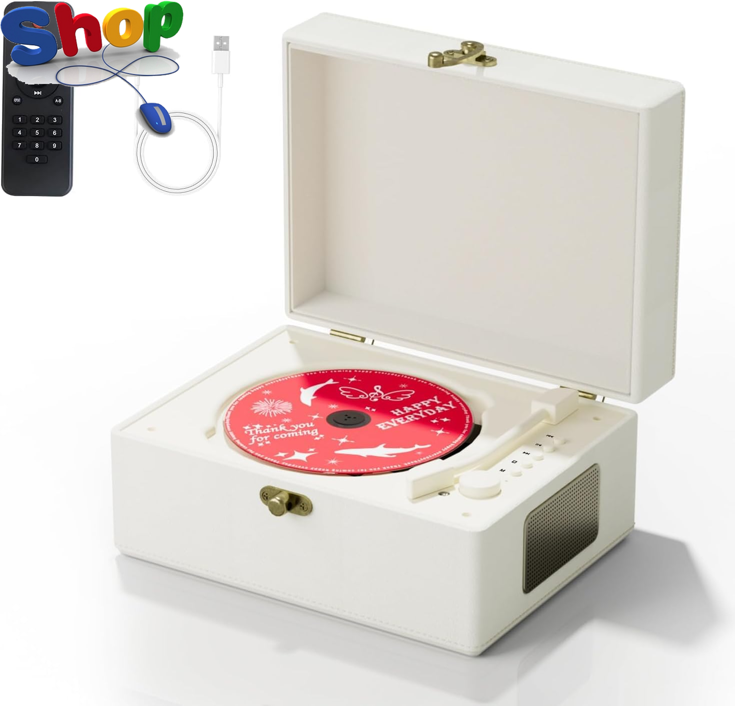 Yintiny Rechargeable Leather CD Player with Speakers, Bluetooth Transmitter, Festival Gift, BGM Player for Home Decor.
