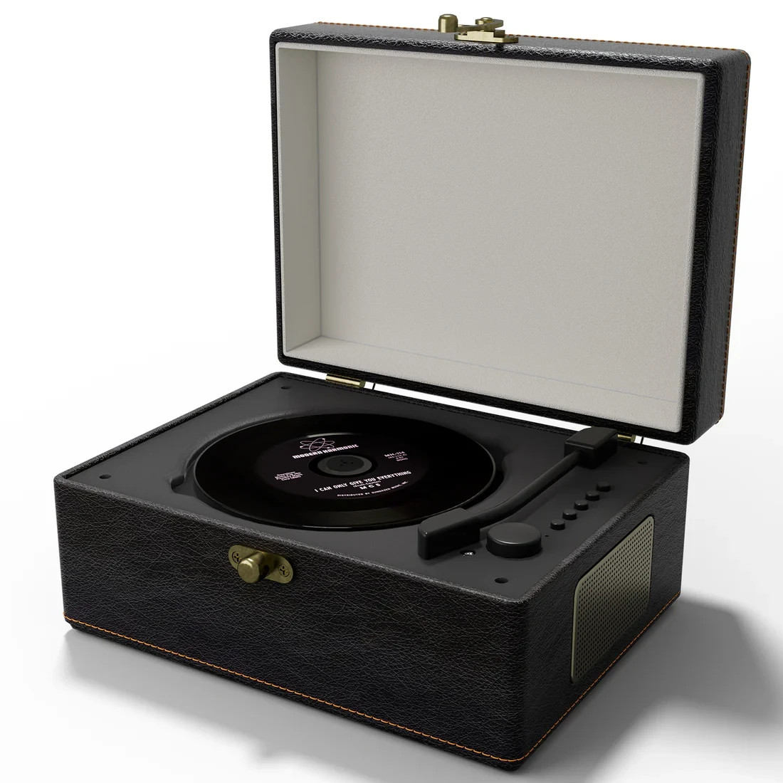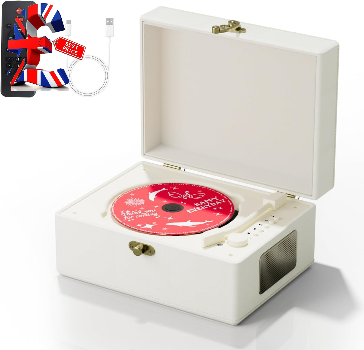 Rechargeable Leather CD Player with Speakers, Bluetooth Transmitter, Festival Gift, BGM for Home Decor