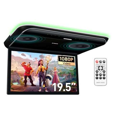 XTRONS 19.5-inch HD Digital TFT 16:9 Screen Car Overhead Video Ultra-Thin Car Roof Mounted Player 1080P with Built-in HDMI/AV/USB Speakers and Colourful Aura Light